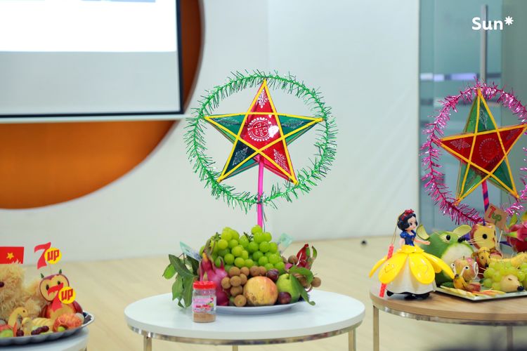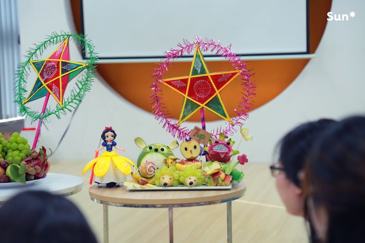 Chương trình "Trung thu linh đình, nhà Sun* xập xình" cho các Sunner Đà Nẵng năm nay được tổ chức thật công phu với rất nhiều tiết mục hấp dẫn. Tham dự chương trình, các Sunner được cùng nhau sửa soạn mâm cỗ, trải nghiệm tự tay cắt giấy làm lồng đèn, tỉa hoa quả, làm bánh trái,.. vô cùng náo nhiệt. Không khí Trung thu lan tỏa đến khắp mọi ngóc ngách văn phòng Sun* Đà Nẵng, tạo nên một ngày hội thực sự.