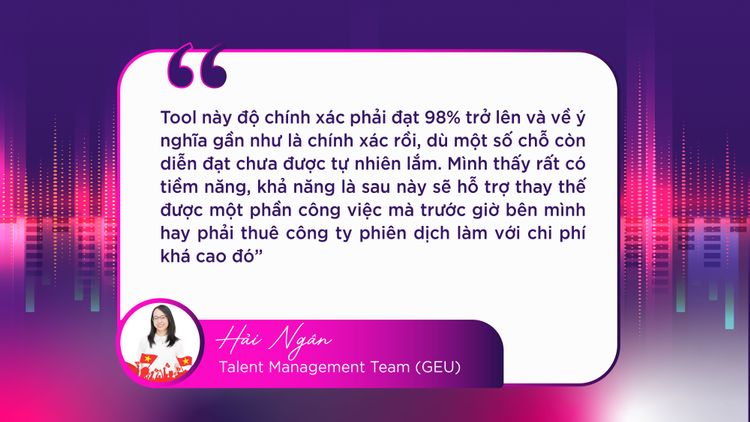 Không dừng lại ở một dịch vụ speech-to-text thông thường, “Audio Transcribe” được thiết kế như một trợ lý xử lý nội dung toàn diện. Công cụ cho phép tự động tạo file phụ đề định dạng SRT & VTT với timestamp chính xác, sẵn sàng tích hợp vào các nền tảng chỉnh sửa audio/video. Bên cạnh đó, công cụ còn có khả năng hỗ trợ đa ngôn ngữ (EN, JP, VI) giúp mở rộng phạm vi ứng dụng trong nhiều bối cảnh làm việc khác nhau. Vượt khỏi scope giải quyết những nhu cầu từ một số bộ phận gửi về đơn thuần, tầm nhìn dài hạn của sản phẩm là hỗ trợ được cho tất cả các vị trí khác trong công ty, đặc biệt là khối CEV.