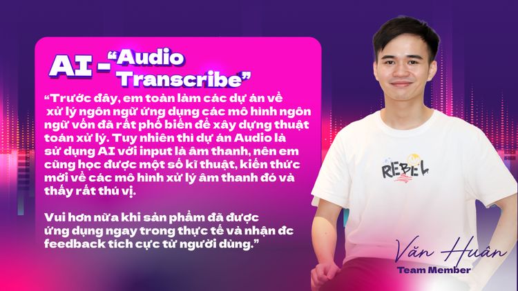 Mỗi một sản phẩm mới không chỉ mang lại những giá trị thiết thực cho người dùng mà đối với bản thân đội ngũ phát triển, đó còn là “một thế giới tự do nơi mỗi người đều say mê kiến tạo những giá trị Awesome”. Audio Transcribe cũng mở ra một hành trình khám phá đầy thú vị về những kiến thức mới mẻ cho những thành viên tham gia.