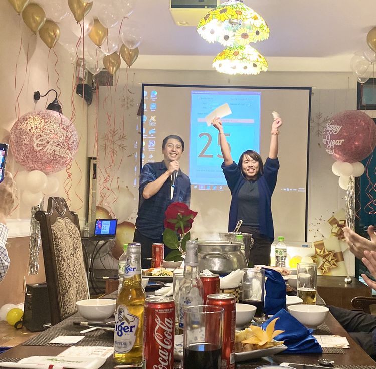 Ngoài ra, còn có phần mini game Lucky draw với các phần thưởng có giá trị (Nồi chiên không dầu, bàn là đứng, bếp từ...). Bữa tiệc cuối năm của DEU đã diễn ra trong bầu không khí ấm áp, vui vẻ với sự tham gia đông đủ của tất cả các thành viên trong bộ phận.