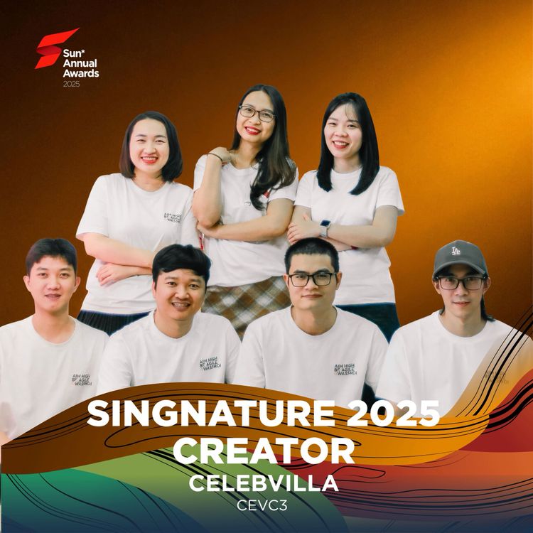 Vinh danh tại hạng mục Signature 2025 - Creator, CelebVilla là một ví dụ sống động nhất cho tinh thần "lội ngược dòng" ngoạn mục tại Sun* trong năm 2025. Tháng 3, khi khách hàng thông báo dừng phát triển dự án, thay vì bỏ cuộc, các bạn đã chủ động thuyết phục đối tác "mua" giải pháp SaaS Multi-Tenant, giải quyết trăn trở của khách hàng theo một góc nhìn hoàn toàn mới. Chính sự nhạy bén ấy đã tháo gỡ bài toán kinh doanh của khách hàng, mang về thêm 19 Man-Month và giúp CelebVilla trở thành dự án duy nhất thực hiện Cross-sale chủ động thành công trong năm. Sáng kiến dùng AI để xây dựng proposal và Work Breakdown Structure được CelebVilla đưa ra ngay từ thời điểm AI chưa phổ biến cũng là 1 ví dụ cho tinh thần Creator của dự án. Tập thể CelebVilla đã chứng minh rằng: khi luôn giữ tinh thần tiên phong, thách thức sẽ trở thành bệ phóng cho những giải pháp đột phá, mang lại giá trị Awesome cho khách hàng và định hình chuẩn mực mới cho chất lượng và vị thế của Sun* trên thị trường. |