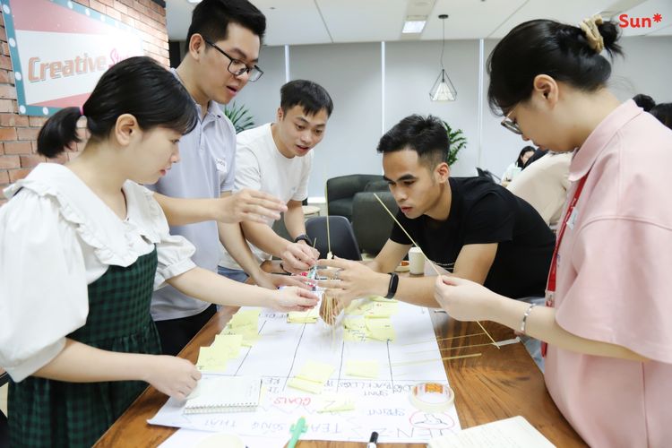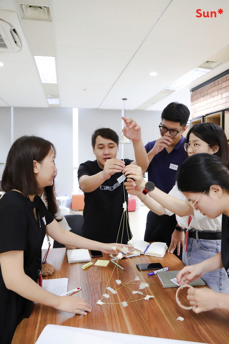 Không chỉ củng cố tinh thần teamwork, trò chơi còn đúc kết bài học về tư duy đánh giá tính hiệu quả trong sản phẩm, đáp ứng đúng đề bài được đưa ra.