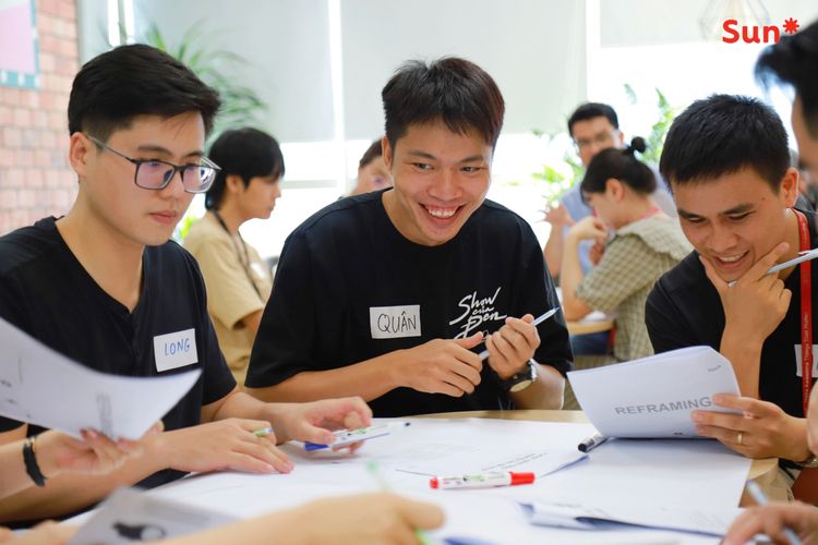 Huyền Chi: ''Mình vốn là một giảng viên nội bộ, được Sunner biết đến thông qua nhiều hoạt động liên quan đến học tập, cũng là facilitator của khóa học Critical Thinking đã tổ chức 3 miền trước đó trong năm 2022. Trong khi đó, anh Thái Học (CEV14) là một PSM có nhiều năm kinh nghiệm làm việc tại Sun*, kinh qua cả trăm dự án, trực tiếp làm việc với khách hàng và hiểu insight khó khăn của các PSM, Brse, Comtor trong quá trình làm việc. Với chương trình Problem Solving - 1 chương trình đề cao tính hệ thống, bản chất để giải quyết vấn đề và dành riêng cho PSM, Brse, Comtor thì sự kết hợp từ phía L&D và 1 internal trainer có kinh nghiệm thực chiến sẽ giúp tạo ra nội dung có tính ''may đo'' phù hợp nhất cho học viên tại Sun*.''