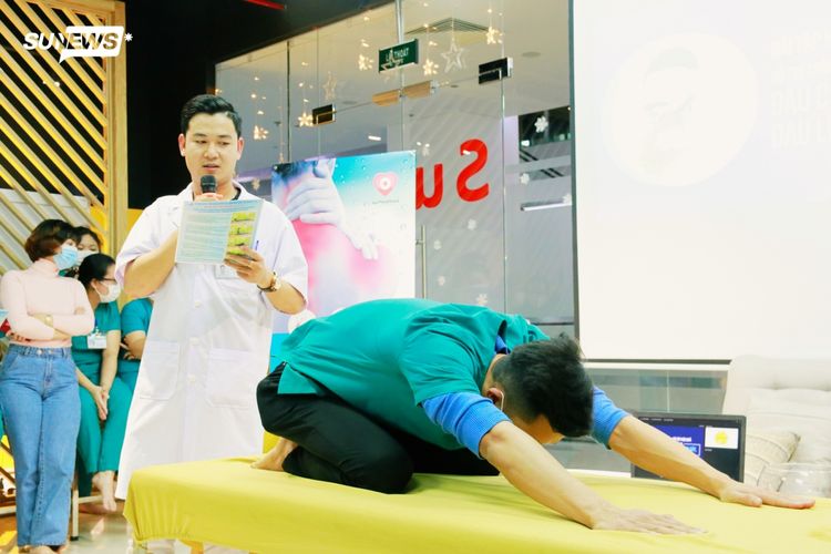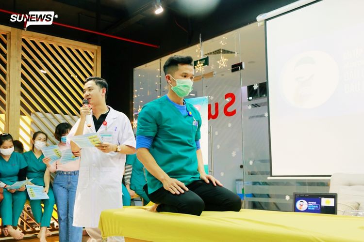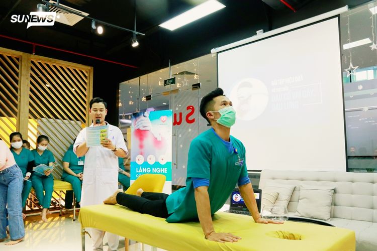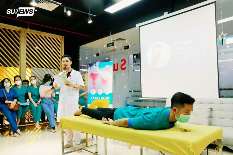 Trong khuôn khổ workshop, bên cạnh các kiến thức để phòng tránh và khắc phục bệnh lý cổ - vai - gáy, nhân viên Sun* đã được chính các kỹ thuật viên, chuyên gia và bác sĩ hướng dẫn  tập luyện và massage cơ bản. Hoạt động này được các Sunner hưởng ứng hơn cả, đa phần đều cảm thấy rất “đã” khi được xoa bóp phần xương khớp vốn đang rất nhức mỏi của mình sau một ngày dài làm việc. Thông qua hoạt động trải nghiệm này, nhiều người đã nhận thấy được tầm quan trọng của việc chăm sóc sức khỏe xương khớp thường xuyên.