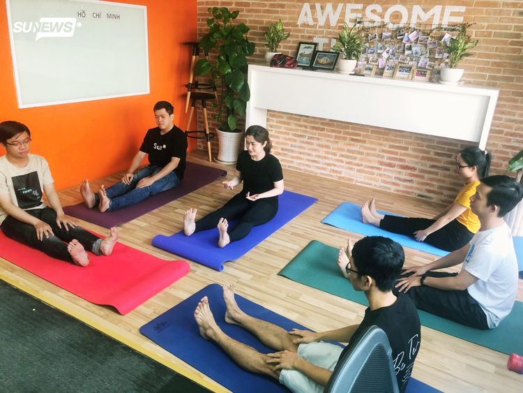 Giảng viên yoga Nguyễn Đoàn Thanh Trúc chia sẻ và hướng dẫn các động tác yoga giãn cơ xương khớp cho Sunner