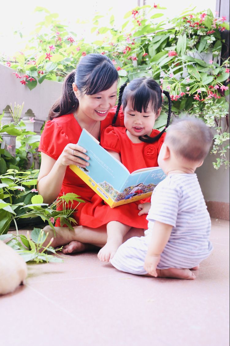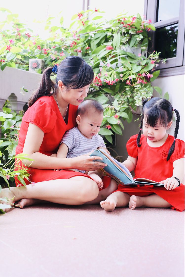 Thế nhưng, khi mang thai bạn nhỏ đầu tiên, với mong muốn kích thích sự phát triển trí não của em bé ngay từ khi còn trong bụng mẹ, chị Khanh đã bắt đầu mua sách thiếu nhi về đọc cho em bé mỗi tối. Đến khi em bé chào đời, chị vẫn giữ thói quen đó, hầu như tối nào chị cũng đọc sách cho em bé nhà mình nghe. Có lẽ nhờ vậy mà cả ba bạn nhỏ nhà chị Khanh đều rất thích đọc sách.